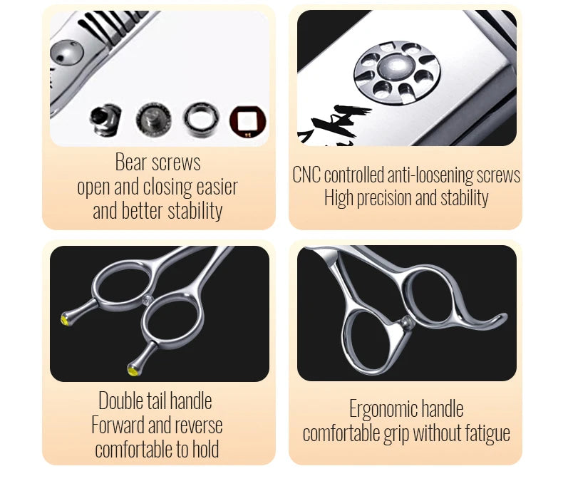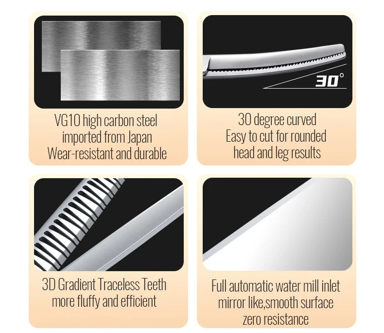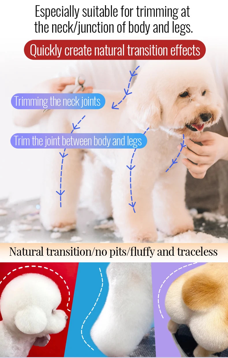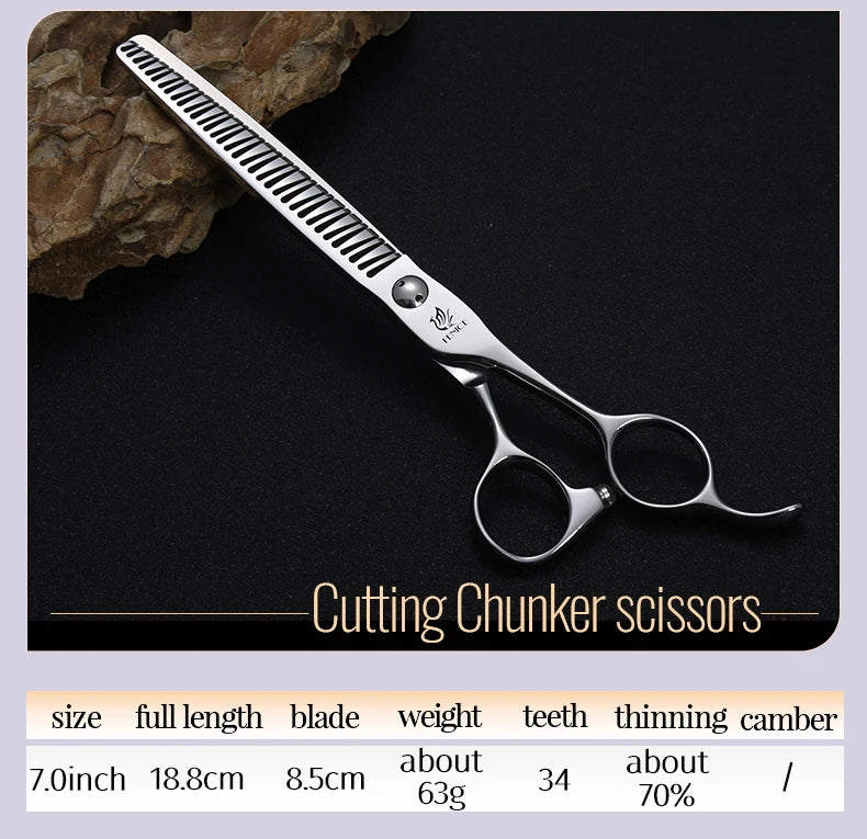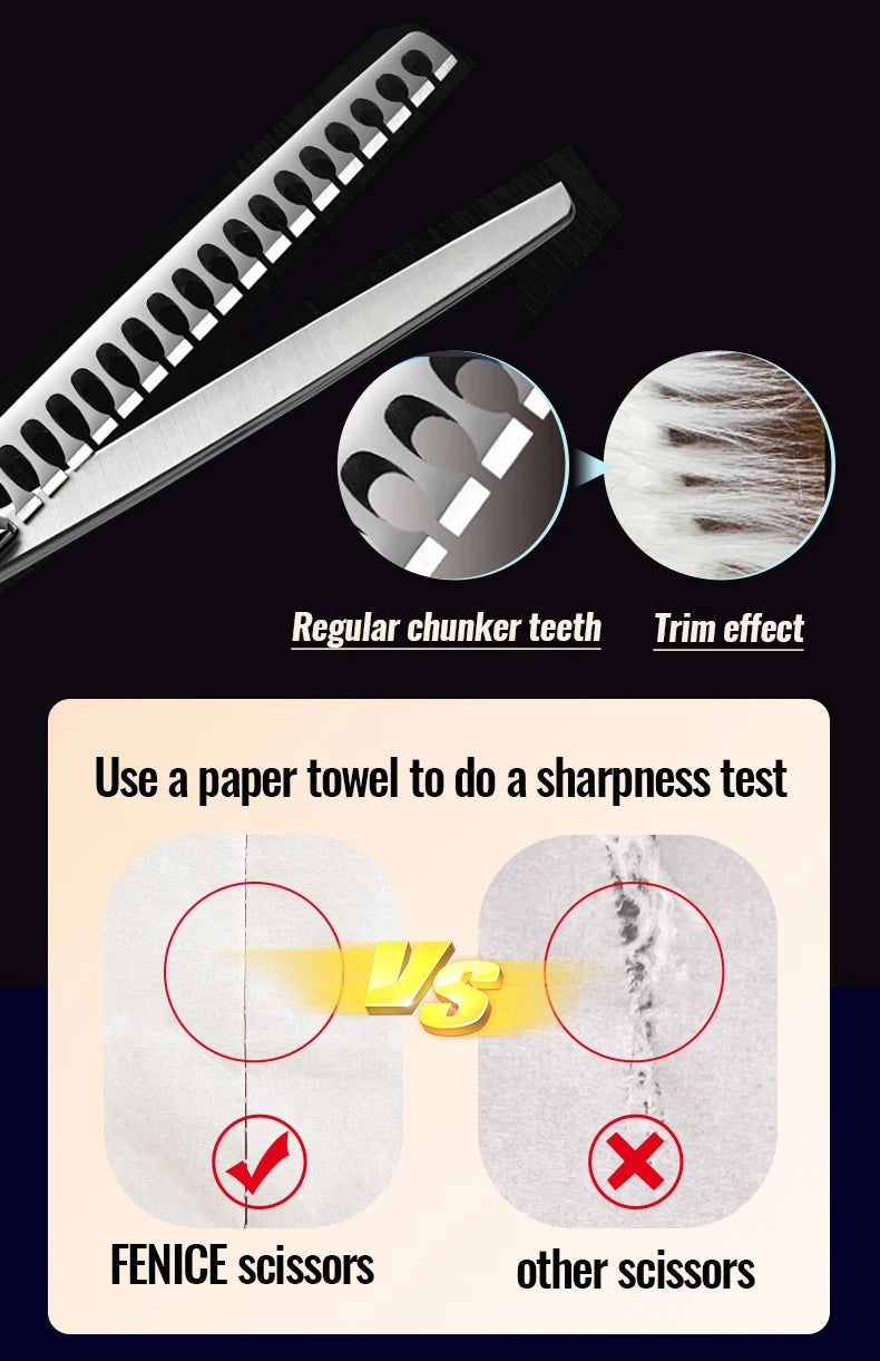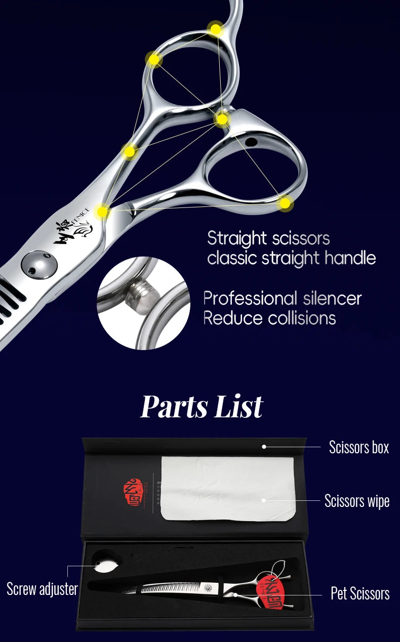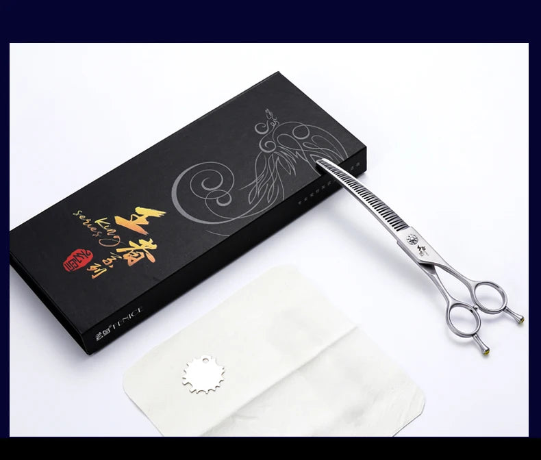 Fenice 7.0 Inch VG10 Steel 3D Gradient Traceless Teeth Pet Curved/Straight Chunker Scissors Bearing Screws Pet Grooming Shears